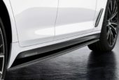 کار را با ام5 استاندارد شروع می کنیم. این خودرو در برنامه جدید پکیج M ب ام و، کیت بدنه کامل فیبرکربن را همراه خود داشت. جزئیاتی که اسپلیتر(لبه اسپرت زیر سپر جلو) جلو، گریل(جلوپنجره) تغییر شکل یافته، بامپر(سپر) عقب توسعه یافته، رکاب اسپرت، قاب آینه های کناری، اسپویلر عقب همگی با پوشش فیبرکربن جز مهمترین رویدادهای آن محسوب می شود. دیفیوزر عقب نیز ظاهری جدید به رنگ مشکی شیشه ای و قابی از فیبرکربن را به نمایش گذاشته است.