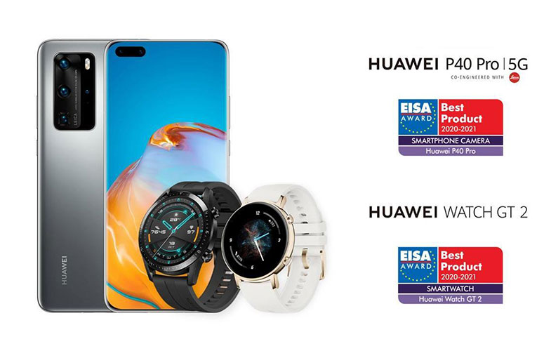 هوآوی موفق شد دو جایزه مهم را از مرکز صوت و تصویر اروپا (EISA) دریافت کند. گوشی پرچمدار Huawei P40 Pro جایزهی EISA Smartphone Camera (بهترین دوربین موبایل) را از این موسسه دریافت کرده و ساعت هوشمند Huawei Watch GT2 نیز موفق به دریافت جایزه Best Smartwatch (بهترین ساعت هوشمند) شد.