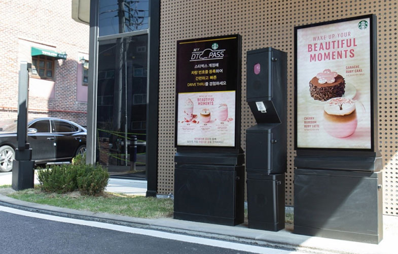 در کرهجنوبی شرکت سامسونگ به کمک نمایشگرهای سری outdoor اسمارت ساینیج خود، نیازهای کافیشاپهای زنجیرهای استارباکس را تامین کرده است. این کافی شاپها خدمات خود را به شکل drive-through و از طریق نمایشگرهای مخصوص اسمارت ساینیج سامسونگ ارائه میدهند که این موضوع شامل ۴۰ درصد از ۱۲۰ فروشگاه جدید استارباکس میشود.