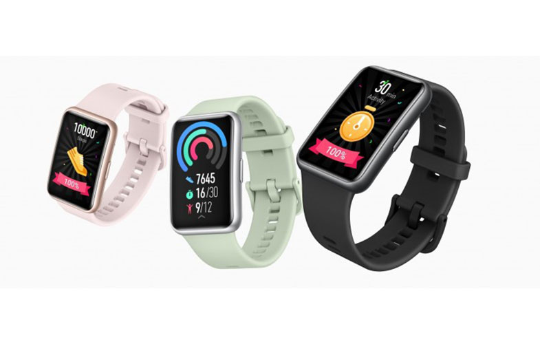 Huawei Watch Fit در سه رنگ مشکی گرافیتی، صورتی ساکورا و سبز نعنایی ارائه می شود که با بندی نارنجی رنگ نیز قابل سفارش است.