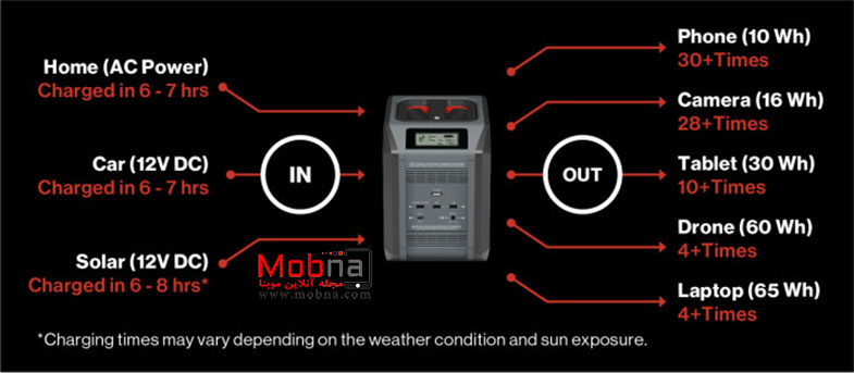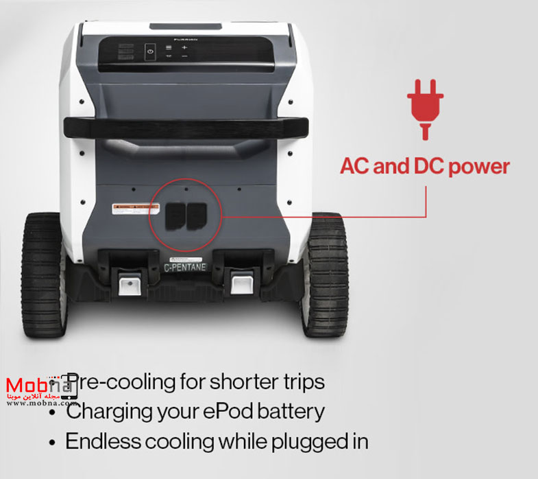 باتری یخچال قابل تعویض است و همچنین می توان از پنل خورشیدی برای شارژ باتری استفاده کرد. روی بدنه یخچال دو خروجی AC، 3 پورت یو اس بی و یک پورت یو اس بی-سی نیز قرار داده شده که برای مصارف مختلف از جمله شارژ گجت ها قابل استفاده است. به این ها باید یک پد شارژ بی سیم با 10 وات قدرت را نیز اضافه کنید.