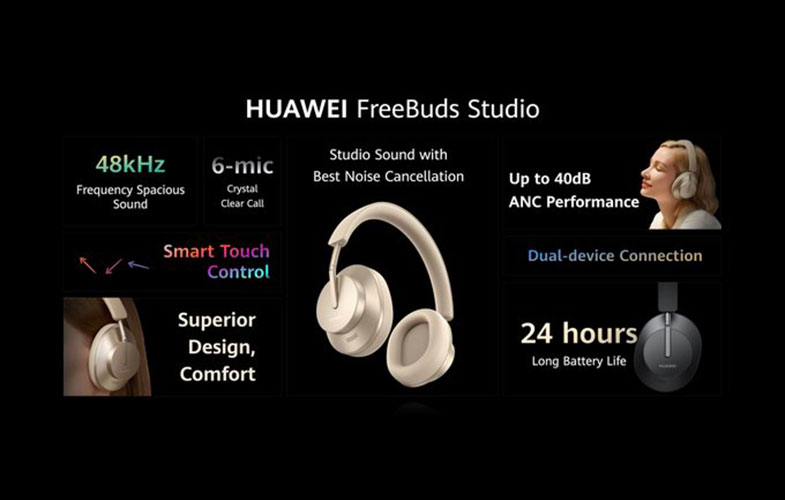 هدفون هوآوی FreeBuds Studio نشاندهندهی ورود رسمی این شرکت به دنیای هدفونهای بلوتوث روی گوش است. قیمت این محصول نشان میدهد که هدفون FreeBuds Studio یک محصول با کیفیت است و میتواند با محصولاتی از سونی (Sony)، بوز (Bose) و سنهایزر (Sennheiser) رقابت کند. این هدفون265 گرم وزن دارد و از بازوی ظریف استیل با قطر ۷ میلیمتر استفاده میکند. در قسمتهایی از هدفون که روی گوش قرار میگیرند و زیر هدبند هدفون، از بالشتکهای نرم برای راحتی بیشتر استفاده شده است.