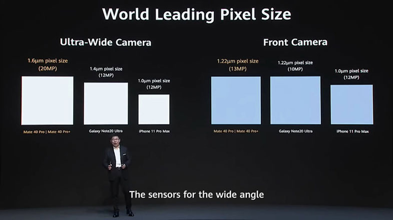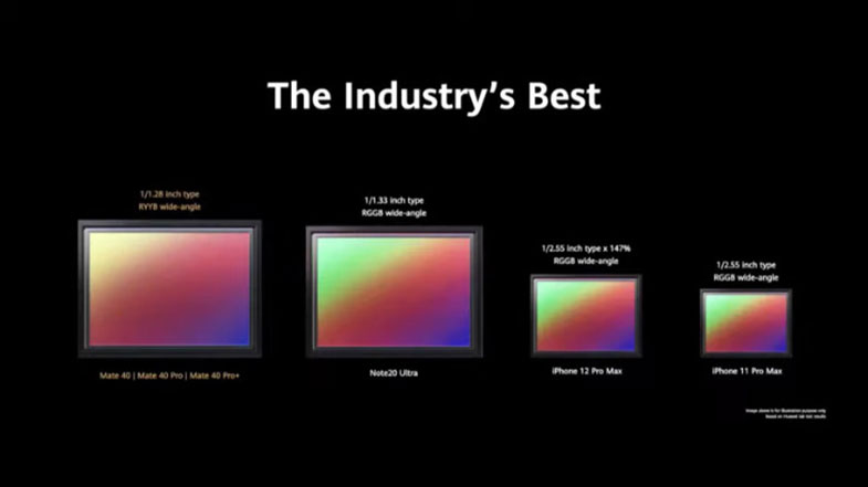 هوآوی در این گوشیها برای اولین بار از یک سنسور ۵۰ مگاپیکسلی با اندازه 1/1.28 اینچ استفاده کرده که بزرگترین سنسور دوربین در دنیای موبایل است. این سنسور بزرگ به خودی خود باعث میشود در مقایسه با سنسورهای مورد استفاده در گوشیهای دیگر، تعداد بیشتری از فوتونهای موجود در محیط را دریافت کرده و تصاویر روشنتر و واضحتری ثبت شود.