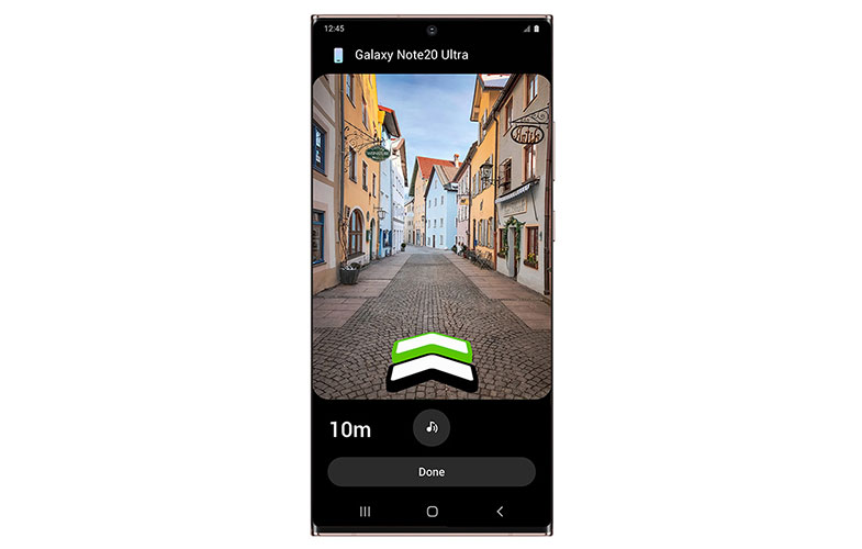 در این خدمات جدید سامسونگ با استفاده از نقشههای دقیق و امکان «زنگ زدن» دستگاه گم شده، شما میتوانید خیلی راحت آن را پیدا کنید. در این روش شما ابتدا گم شدن دستگاه را روی SmartThings Find اعلام میکنید که در نتیجه آن محل آن دستگاه روی نقشه گوشی هوشمند به شما اعلام میشود. وقتی به نزدیکی دستگاه رسیدید میتوانید یا گزینه «زنگ زدن» را انتخاب کنید تا صدای دستگاه را بشنوید و یا با استفاده از گزینه جستجوی نزدیک با استفاده از AR، یک راهنمای گرافیکی را مشاهده کنید که نزدیک شدن شما به گوشی را با رنگ به شما نشان میدهد.