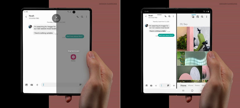 رابط کاربری گلکسی Z Fold2 هم از ابعاد مختلف بهینهسازی شده و میتواند با تقسیم صفحه نمایش اصلی گوشی، امکان مولتیتسکینگ راحتتر را برای شما فراهم کند. به این ترتیب وقتی در حال ارسال پیامهای متنی برای دوستانتان هستید، برای ضمیمه کردن یک عکس فقط کافی است آن عکس را از یک پنجره کشیده و داخل پنجرهای دیگر بیاندازید. با استفاده از این گزینه جدید، کاربران اکنون میتوانند از یک برنامه در چند پنجره مختلف استفاده کنند. در نتیجه میتوانید مقاله موردنظرتان برای مطالعه را در یک پنجره باز کرده و در پنجره بعدی، موضوع موردنظرتان را جستجو کنید. همچنین میتوانید این ترکیب پنجرههای مختلف را در بخش Multi-Window با استفاده از Add Pair ذخیره کنید تا از آن به بعد بدون هیچ مشکلی پنجرهها را به همان شکل باز کنید.