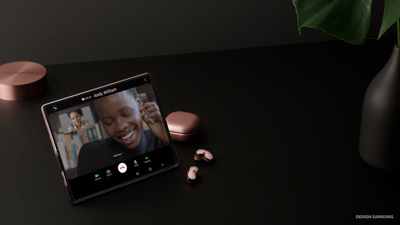 نکته کلیدی در اینجا حالت Flex Mode در گلکسی Z Fold2 است که بصورت خودکار صفحه نمایش را به دو بخش تقسیم کرده و به شما امکان میدهد تا براحتی محتوای موردنظرتان را در بخش بالایی و کنترلهای مربوط به آن را در بخش پایینی صفحه مشاهده کنید. در حالت نیمهباز میتوانید این گوشی را به شکل ایستاده، بدون دخالت دست گذاشته و در نتیجه براحتی کارهای دیگرتان را انجام دهید. زیبایی طراحی انعطافپذیر در گلکسی Z Fold2 در همینجاست: آزادی کامل برای انجام مولتیتسکینگ که شامل هر چیزی از تماشای ویدیو در حالت بسته تا گرفتن تماسهای ویدیویی در یک طرف نمایشگر اصلی و یادداشت برداری در طرف دیگر همان نمایشگر میشود.