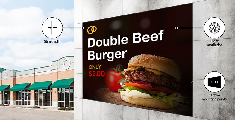 نمایشگرهای الایدی ساینیج سامسونگ با داشتن چنین قابلیتهایی به راهکاری جذاب، کاربردی و مقرونبهصرفه برای پخش تبلیغات و اطلاعرسانی در محیطهای داخلی همچون پاساژها، فروشگاهها، گالریها، نمایشگاهها و… تبدیل شدهاند.