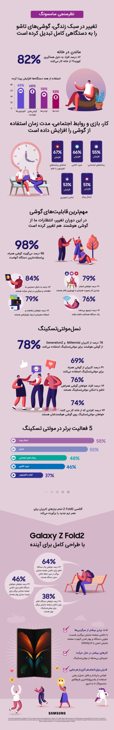 نتایج نظرسنجی گفته شده و تاثیر آن بر تغییرات سبک زندگی کاربران، افزایش تقاضا برای گوشیهای تاشو و عرضه به موقع گلکسی Z Fold2 برای پاسخ به این تقاضا را میتوانید در اینفوگرافی زیر مشاهده کنید.