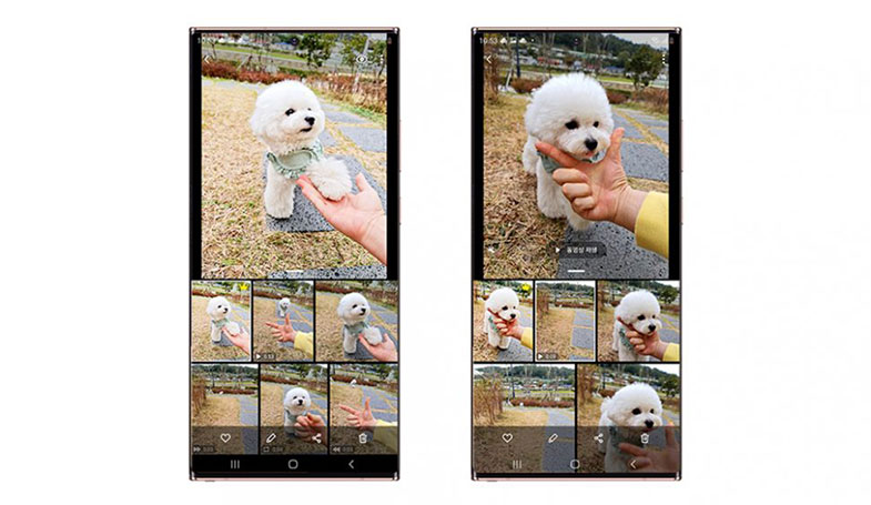 برای کسانی که عاشق فیلمبرداری از سگشان هستند اما معمولا آن لحظههای خاص را نمیتوانند مجزا کنند، گلکسی Note 20 Ultra یک راه حل مناسب به نام قابلیت Single Take با استفاده از هوش مصنوعی دارد. این قابلیت به شما امکان میدهد تا انواع عکسها، ویدیوها و حتی تصاویر قابل تبدیل به meme را هم تنها در یک حرکت ثبت کنید. با انتخاب حالت Single Take و ثبت ویدیو، هوش مصنوعی پشت صحنه تصویر و سوژه موردنظر را تحلیل کرده و بهترین عکسها و کاتها را به شما پیشنهاد میدهد در نتیجه دیگر نیازی به اسکرول دستی نتایج مختلف نخواهید داشت.