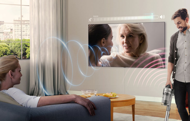 همچنین برای زمانهایی که صدای محیط زیادتر از حد معمول میشود مثل مواقعی که جارو برقی خانه روشن میشود و به کار میافتد قابلیت Active Voice Amplifier طراحی شده است. در این قابلیت صدای تلویزیون همزمان با افزایش صدای محیط زیاد میشود تا نیازی به بلندتر کردن صدا از طریق کنترل تلویزیون نباشد.