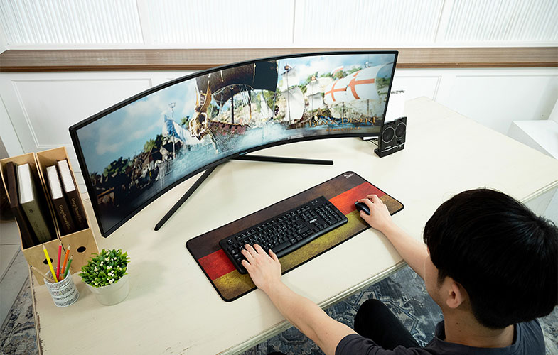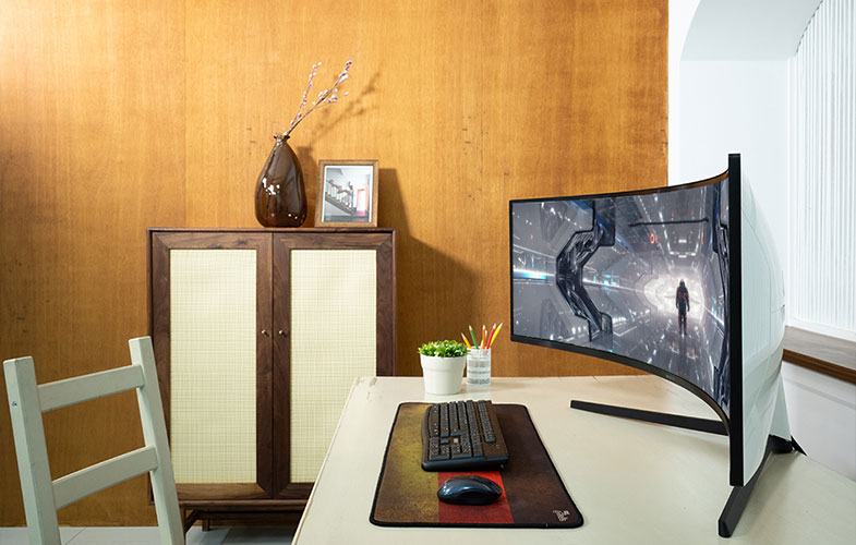 انحنای مناسب مانیتور ۴۹ اینچی Odyssey G9 میدان دید بازیکن را برای احاطه کامل به محیط بازی آزاد میگذارد. ضمن اینکه نسبت تصویر مناسب ۹:۳۲ برای گستردهتر کردن زمین بازی و پهنای وسعت دید برای گیمرها در نظر گرفته شده است. کاربران تنها با نگاهی آنی میتوانند تمام موقعیت خود را به سرعت تحت کنترل داشته باشند.