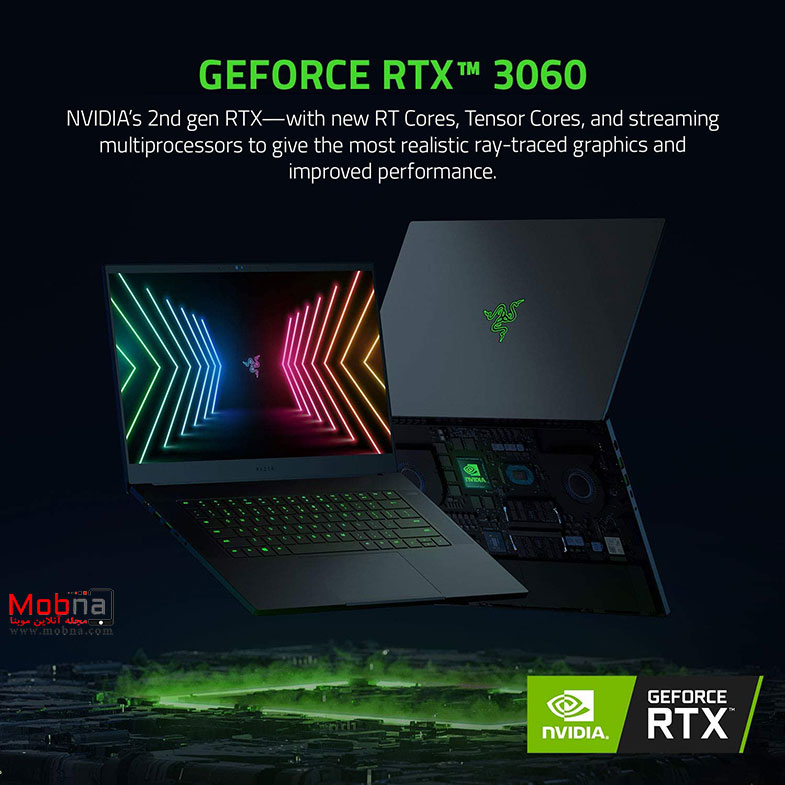 ریزر بلید 15 بیس از پردازنده شش هسته ای نسل دهم اینتل Core i7-10750H در هماهنگی با پردازنده گرافیکی انویدیا جی فورس RTX 3060/3070 استفاده می کند.
