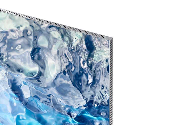 همچنین با پوشش ۱۰۰ درصدی طیف رنگی DCI و Adobe RGB تصاویر با رنگهای چشمنواز و خیرهکننده به نمایش در میآید. نسبت صفحه نمایش به بدنه در این تلویزیونها به 99.99 درصد رسیده که تحول بزرگی را در زمینه طراحی تلویزیون رقم زده است.