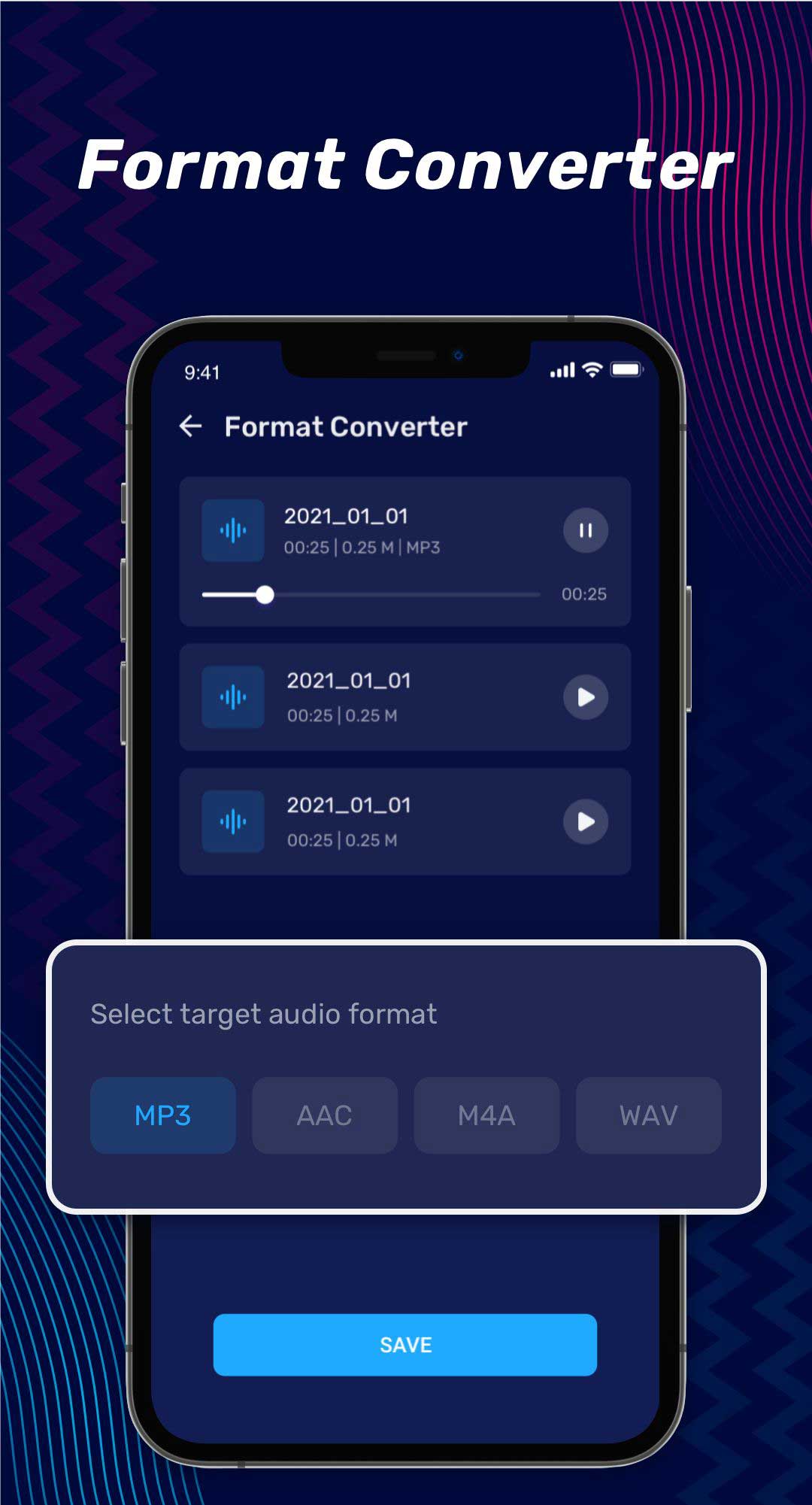 در بسیاری از موارد ما استارت اپ هایی را مشاهده می کنیم که علی رغم داشتن امکانات زیاد نمی توانند اصلی ترین نیاز های ما را برطرف کنند! بر خلاف این دسته از اپلیکیشن ها ما در برنامه Audio Editor Pro – Music Editor, Sound Editor شاهد امکاناتی کاربردی هستیم. شاید در کنار دیگر ابزار مشابه، این نرم افزار قابلیت های محدودی داشته باشد، اما مطمئن باشید که همین ویژگی ها می توانند در سطوح بسیار بالایی نیاز های کاربران را برطرف کنند. از مهم ترین ویژگی های جالب توجه نرم افزار فوق مبدل صوتی و ویدئویی آن می باشد. این قابلیت کمک می کند که بتوانید به سادگی هر چه تمام تر فرمت فایل های صوتی را به یکدیگر تغییر داده و یا اینکه یک فایل ویدئویی را به یک فایل صوتی با کیفیت تبدیل نمایید.