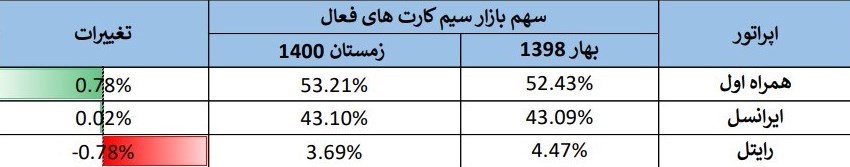 | همراه اول | 53.56% | 53.21% | -0.35% |