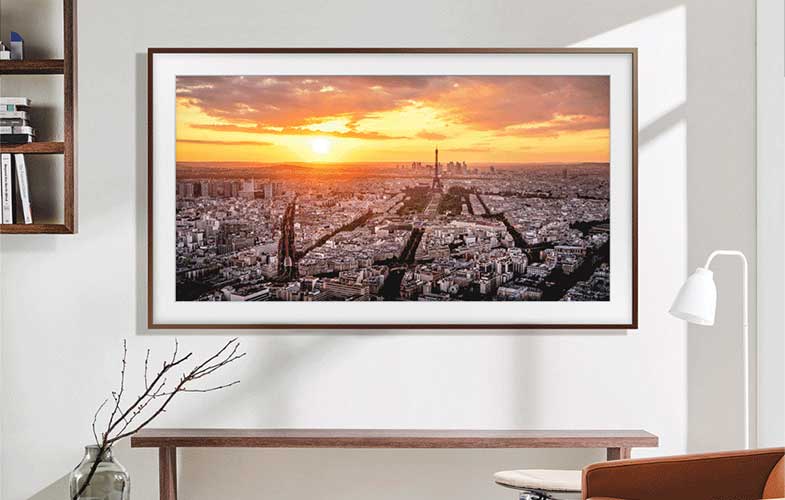 تلویزیونهای سری The Frame سامسونگ در زمانی که خاموش است تبدیل به یک قاب عکس یا اثر هنری میشود و نقاشیها و عکسهای مورد علاقه کاربران را به تصویر میکشد. حاشیه باریک این تلویزیونها با رنگهای متنوع طراحی شده تا هر فردی متناسب با دکوراسیون خانه خود بتواند تلویزیون مورد علاقهاش را انتخاب کند.