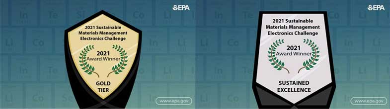 آژانس EPA آمریکا، در بخش چالش مدیریت پایدار مواد الکترونیکی از برندهایی تجلیل میکند که به شیوهای مسئولانه و آیندهنگرانه مواد دوستدار محیط زیست را در محصولات خود بکار بردهاند.