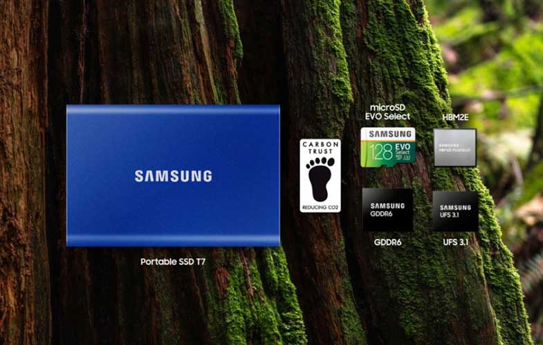 مدیریت موفقیتآمیز سامسونگ در کنترل انتشار کربن تولید شده در حوزه قطعات نیمههادی سبب شد تا دو محصول کلیدی این شرکت، حافظه و سیستم راهکارهای LSI موفق به دریافت گواهینامه «Carbon Footprint» و «کاهش CO2» از موسسه Carbon Trust شوند. Carbon Trust مجموعهای مستقل و تخصصی است که به سازمانها برای کاهش کربن مشاوره میدهد تا از محصولات آینده کربنزدایی شود. گواهینامه «کاهش CO2» تایید میکند که اثرگذاری کربن یک محصول بر محیط زیست با گذشت زمان کاهش مییابد. براساس گواهینامه کاهش CO2 میزان کربن کاهش یافته در فرآیند تولید، معادل مقدار کربنی است که سالانه توسط تقریباً 100 میلیون درخت کاج 30 ساله جذب میشود.