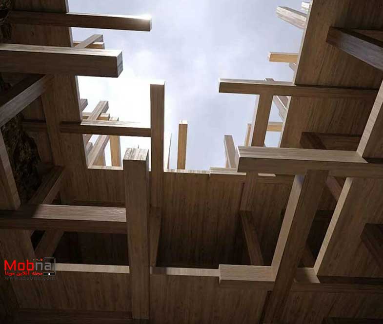موبنا؛ محمدمهدی حیدرپور – “ویرانه بی انتها” یک سازه ظریف است که توسط نیکلاس پرود و مانوئل سروانتس طراحی شده است. روح بی نقص این پروژه توسط تیرها و صفحات چوبی که به آرامی یکدیگر را لمس می کنند، تکمیل می شود و یک سیستم در هم تنیده ایجاد می کند که شکل هرمی وارونه را به خود می گیرد.