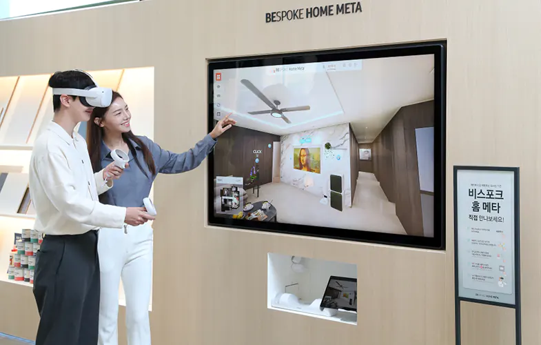 در کنار زندگی واقعی، مصرفکنندگان در کره میتوانند از محصولات Bespoke، در متاورس هم لذت ببرند. سامسونگ سرویس جدید Home Meta را در این کشور راهاندازی کرده است که با ایجاد یک تجربه سهبعدی مبتنی بر متاورس، این امکان را به کاربران میدهد که محصولات Bespoke را در محیطی مشابه خانه خود انتخاب و تجربه کنند. کاربران میتوانند مدل و رنگ دقیق مورد نظر خود را انتخاب کنند، محصولاتی که در فروشگاهها موجود نیستند را مشاهده کنند و با استفاده از ویژگیهای نمایش مجازی، نحوه قرارگیری و چینش لوازم خانگی را در خانه خود شبیهسازی کنند.