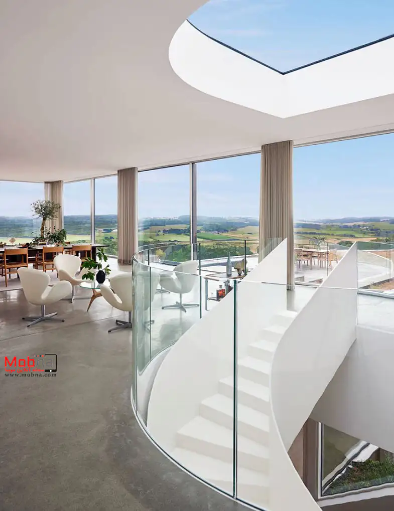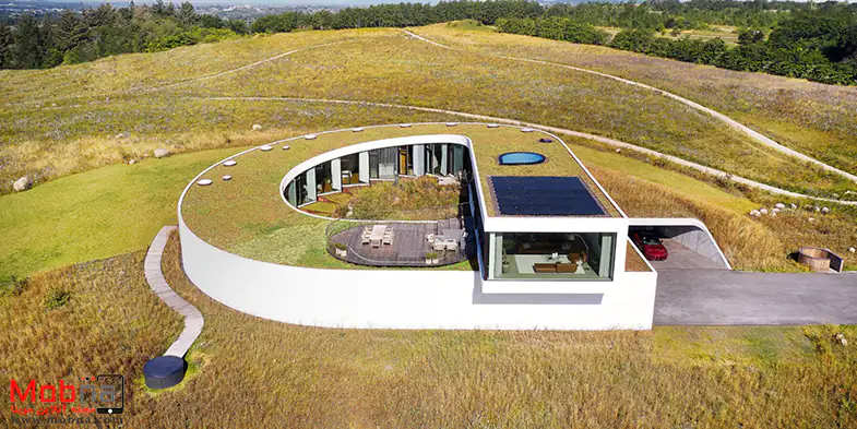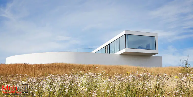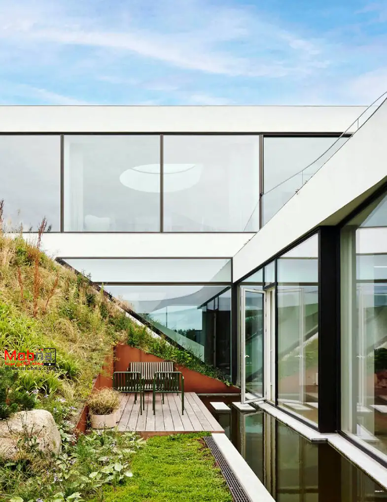 این معماری متمایز در دانمارک با دسترسی کامل به مناظر و بدون مانع از طریق پنجره های عریض شناخته می شود. طراحی خانه به گونه ای است که گویی به آرامی به سطح می آید و ساکنین دعوت می شوند تا با جریان آن قدم بزنند و حین حرکت به سمت بالا، خود را برای نیروی ظریف گرانش آماده کنند.