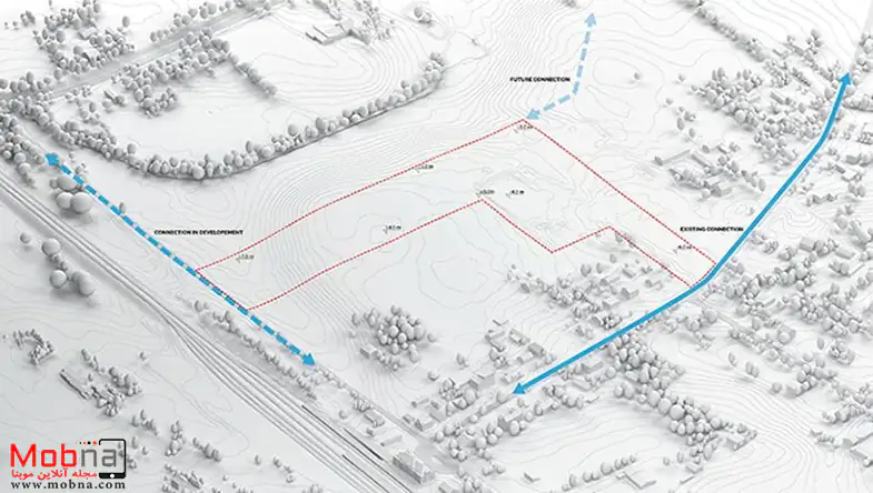 این مجموعه روی یک توپوگرافی باریک و خندقی با اختلاف ارتفاع شش متری بین بالاترین و پایین ترین نقاط سایت قرار گرفته و در دو سطح چیده شده است. سازه مورد نظر زیر زمین پنهان شده و بام سبزی را تشکیل می دهد که با زمین اطراف خود به خوبی ترکیب می شود.