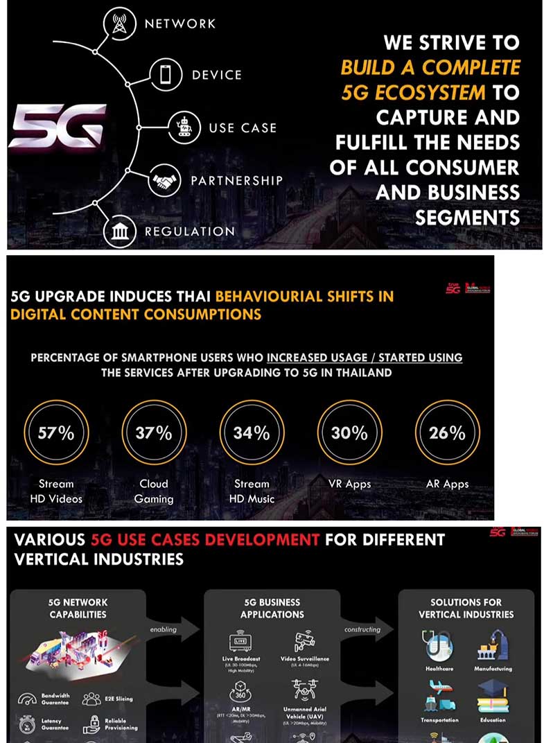 وی با اشاره به اینکه مزایای انتقال مشتریان از 4G به 5G شامل اتصالات داده سریعتر و مطمئنتر، اتوماسیون چابک و کارا است بر اهمیت ایجاد یک اکوسیستم بالغ تأکید کرد و گفت: عامل کلیدی موفقیت برای ما در تایلند این است که اکوسیستم آماده است و عوامل زیادی مانند کارایی هزینه و حمایت تنظیمکنندهها و به طور کلی دولت تایلند در این اکوسیستم جدید نقش مهمی دارند.