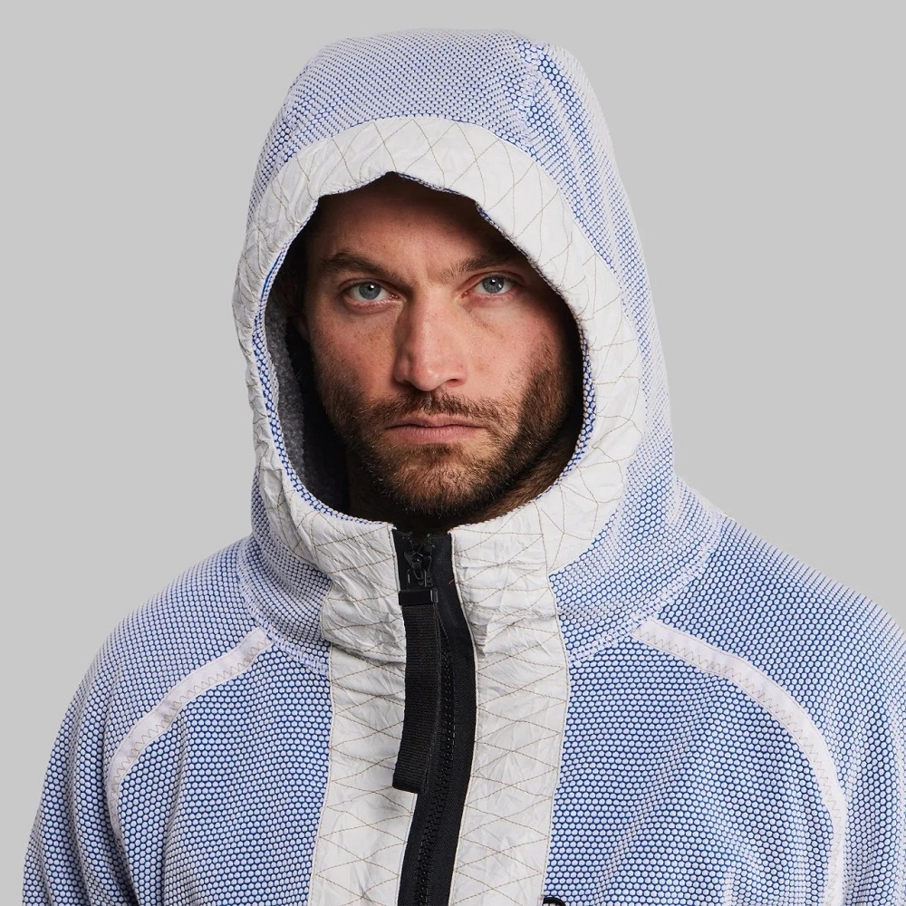 اگرچه داینیما سختترین فیبر جهان است، اما نرمترین نمونه نیست. برای نازک شدن الیاف داینیما تا حد امکان، به آنها حرارت داده شد و بارها و بارها کشیده و شکسته شدند. سپس، این الیاف نازک با مقداری پلی استر و الاستین و با کمک یک ماشین بافندگی به نخ تبدیل شد. نتیجه شکل گیری یک ساختار لانه زنبوری سه بعدی بود. این ساختار هندسی سه بعدی صدها محفظه هوا ایجاد می کند که پارچه را نرمتر و گرمتر می کند.
