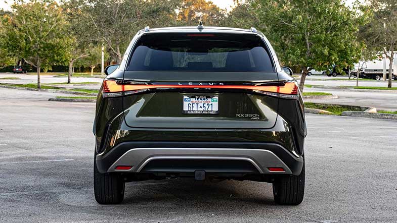 چراغ های اصلی عقب، الگویی یکپارچه و متصل دارند که حروف برند لکسس در قسمت میانی مسیر با لعاب کرومی نصب شده اند.