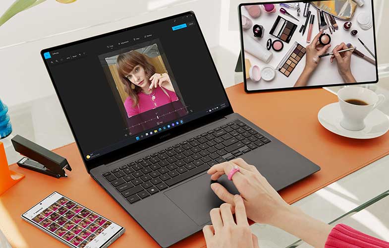 شرکت سامسونگ همچنین برای اتصال و یکپارچگی بیشتر اکوسیستم تلفنهمراه خود رابط کاربری One UI را توسعه داده است و بدین منظور قابلیتهایی معرفی کرده است. اکنون کاربران میتوانند به کمک قابلیت Multi control از یک اکوسیستم متصل بین گلکسی Book و گوشیهای هوشمند خود لذت ببرند. برای مثال کاربران این امکان را دارند که ماوس، صفحهکلید یا حسگر لمسی (Trackpad) گلکسی Book خود را نه تنها با تبلت گلکسی، بلکه با گوشیهای گلکسی منتخب خود نیز به اشتراک بگذارند و متنی را بین دستگاهها کپی و پیست کنند و یا تصاویر را از یک دستگاه به دستگاه دیگر بکشند و رها کنند و از این طریق احساسی مانند استفاده از یک دستگاه واحد را تجربه کنند. علاوه بر این، قابلیت Link to Windows نیز به کاربران این امکان را میدهد که صفحات وب را بین دستگاهها جابهجا کنند؛ برای مثال صفحهای از وب را در گوشی خود باز کنند و به مطالعه آن در لپتاپ خود ادامه دهند و از این طریق زندگی روزمره را سادهتر کنند.