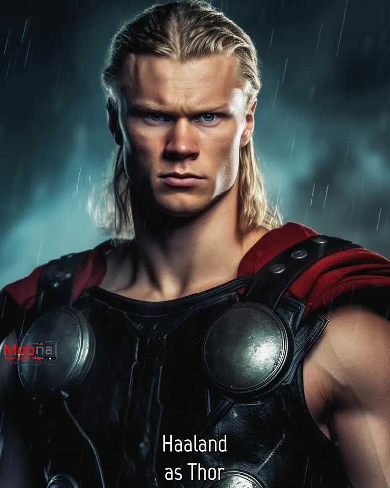 به نظر شما اگر «ارلینگ هالند» قرار بود ابرقهرمان باشد، شبیه به کدامیک از قهرمانان مارول بود؟ به نظر هوش مصنوعی ثور یا تور (Thor) بهترین چهره برای هالند است. در ادامه بازیکنان دیگری را در لباس ابرقهرمانی ببینید.