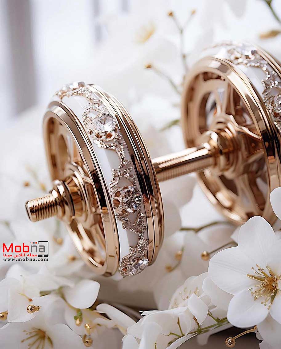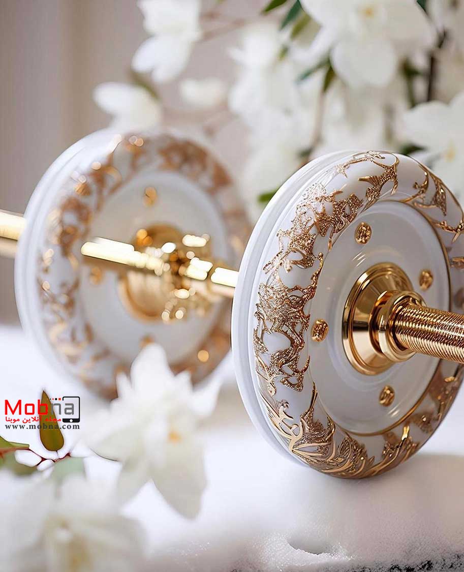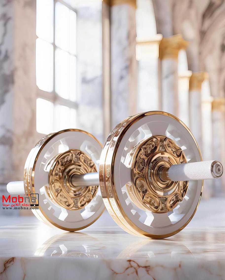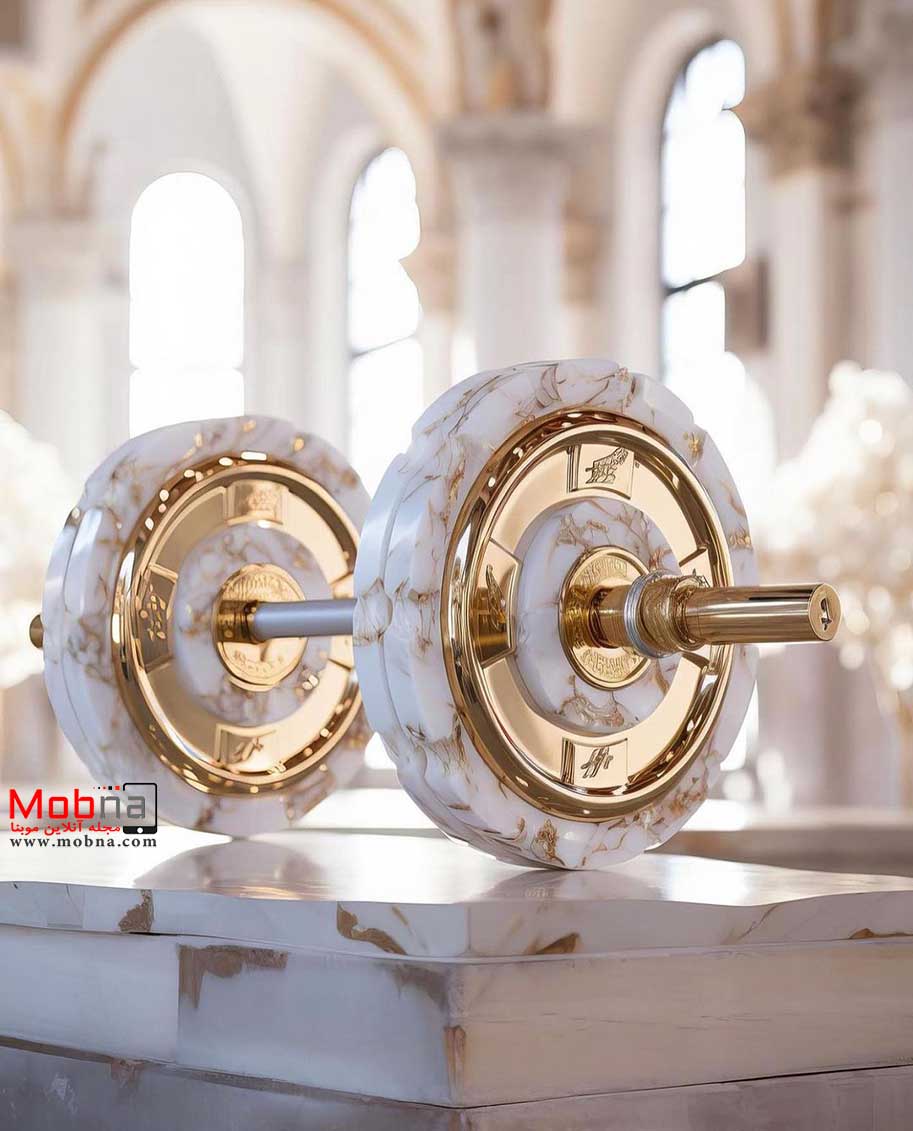 موبنا – قسمت های فلزی طلایی رنگ هستند و وزنه ها نیز شکل و لعابی شبیه سنگ مرمر دارند اما به هر ترتیب رندر جذابی توسط هوش مصنوعی ارائه شده است.
