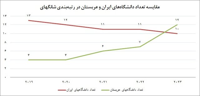 بر اساس آخرین نتایج نظام رتبهبندی دانشگاههای شانگهای، عربستان در تعداد دانشگاههای حاضر در این نظام رتبهبندی از ایران پیشی گرفته است.