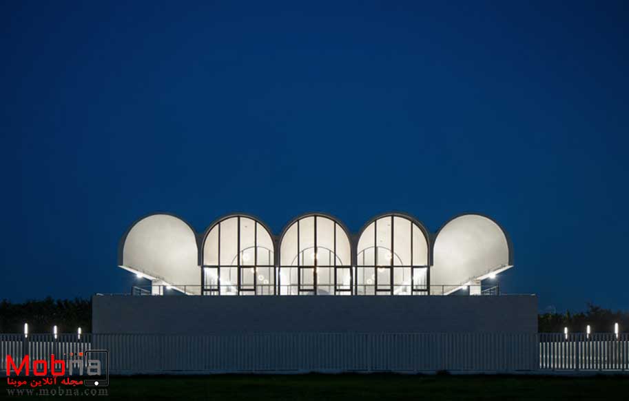 این سازه در شالیزاری در محدوده شمال جاده اصلی مستقر شده است. به دلیل شوری و قلیایی بودن خاک منطقه، کمربندهای آبی در فضای بین برآمدگی ها تعبیه شده اند تا کیفیت خاک بهبود یابد. در نتیجه این طراحی چیدمان متناوب برآمدگی ها و کمربندهای آبی یک بافت راه راه را شکل می دهد. بدین ترتیب تیم معماری نیز از سقف بشکه مانند پیوسته با پنج قوس نیم دایره استاندارد استفاده کرده که یادآور خطوط لوله و تانکرهای نفتی هستند و از این طریق میراث صنعتی شهر را حفظ کرده اند.