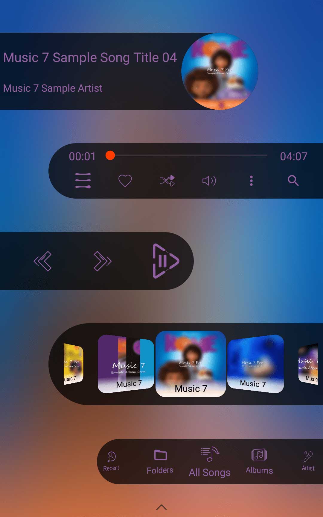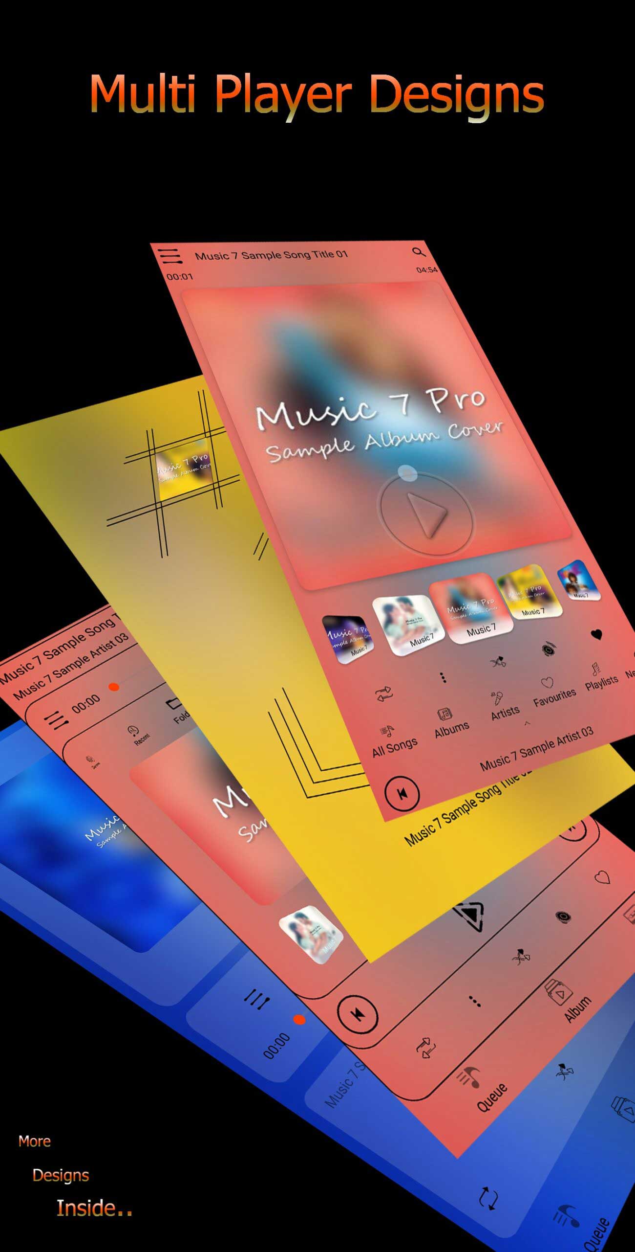 تیم توسعه دهنده برای افزایش جذابیت این استارت اپ تم های مختلف را عرضه کرده است. شما کاربران می توانید با توجه به سلیقه خود تم و یا پس زمینه پلیر را تغییر دهید و آن را تا حد مطلوبی شخصی سازی نمایید. از دیگر ویژگی های برنامه Music 7 Pro – Music Player 7 می توان به اجرای فایل های صوتی با کیفیتی بسیار بالا اشاره نمود.