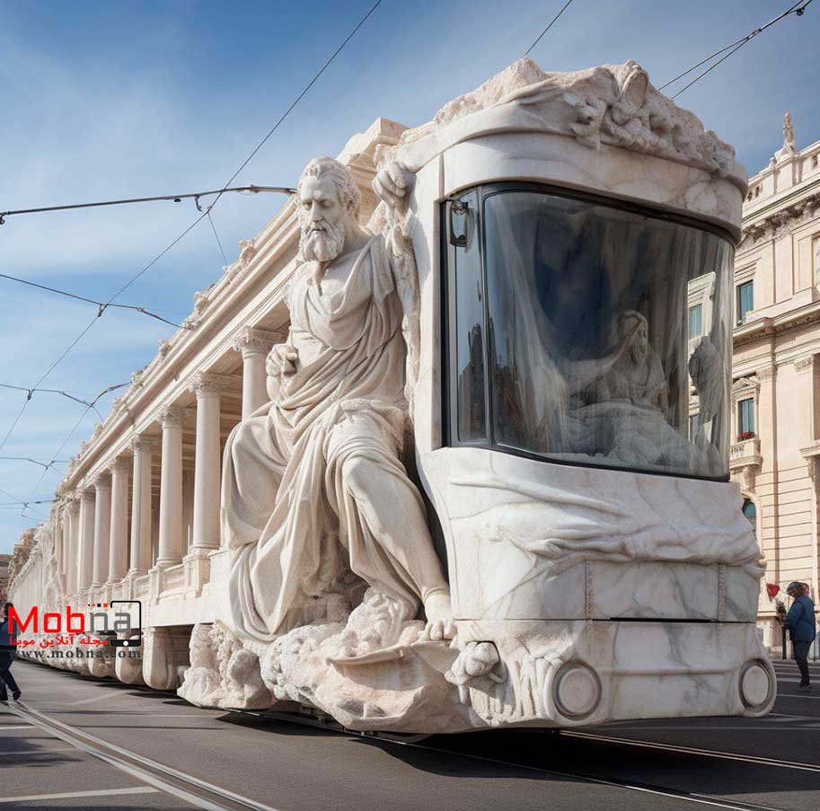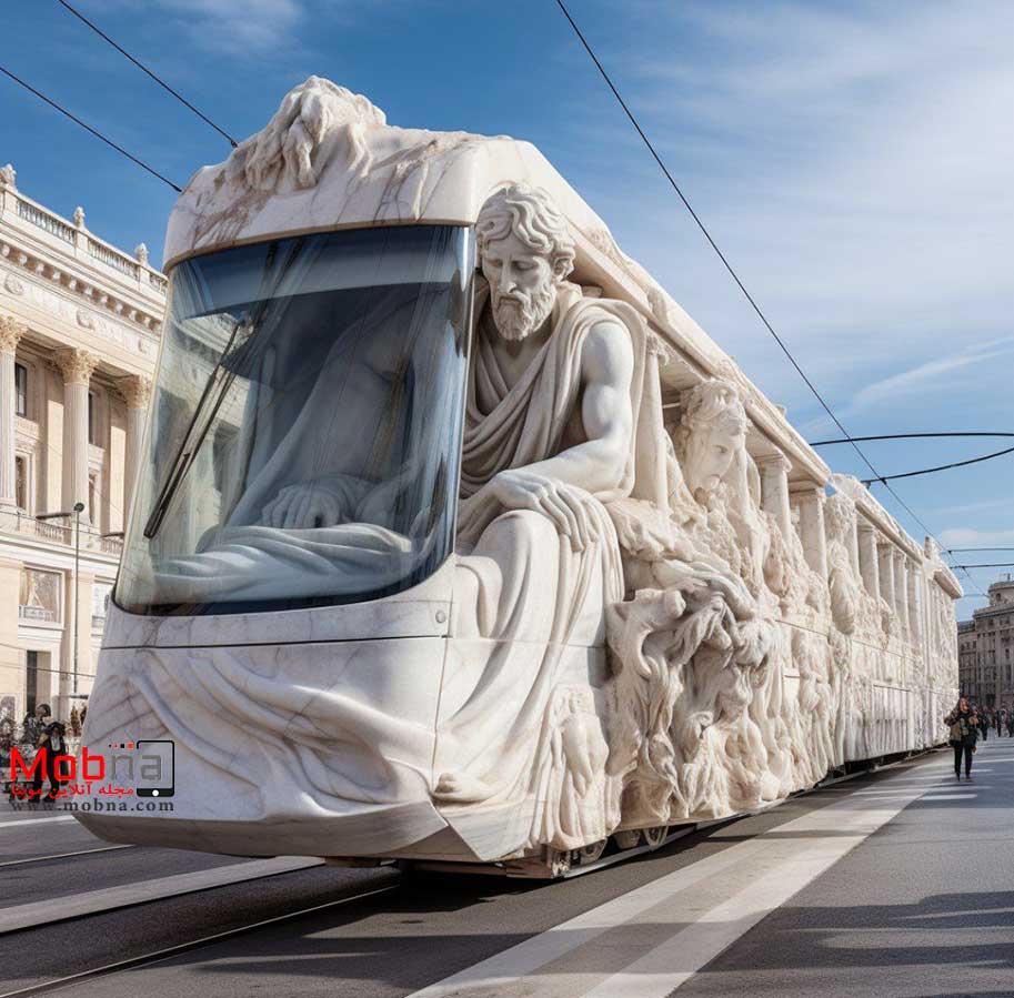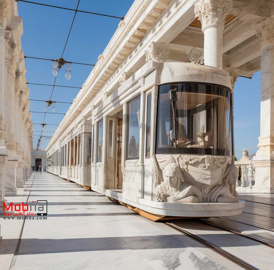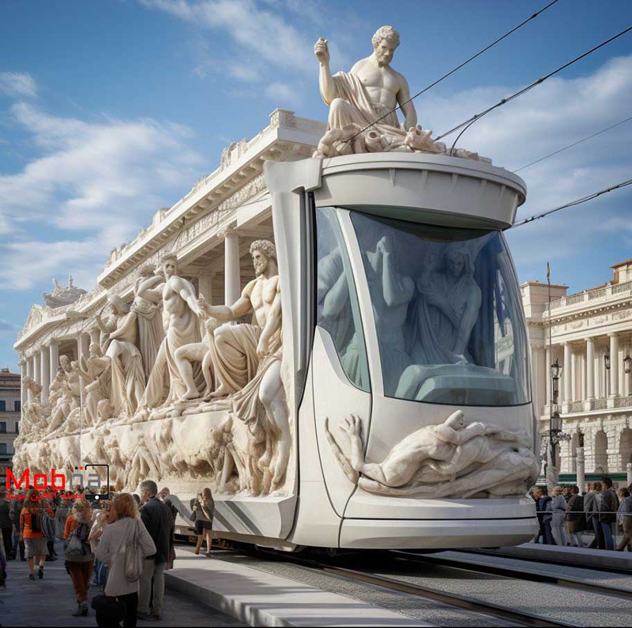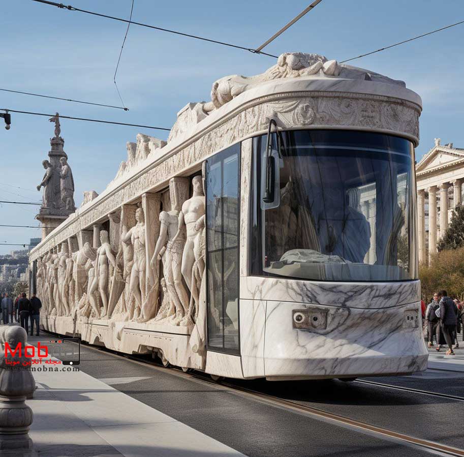 از هوش مصنوعی خواسته شده ترکیبی جذاب از یونان باستان و تراموا ارائه کند!