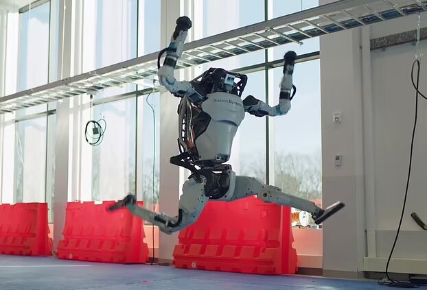ربات «اطلس»(Atlas) میتواند وزنههای سنگین بلند کند، بدود، درها را باز کند، پشتک بزند، بپرد و حتی پارکور انجام دهد. این ربات برای کمک کردن به خدمات اضطراری در عملیات جستجو و نجات و کار کردن در محیط هایی مانند آتشسوزی و مناطق جنگی که انسان نمیتواند در آنها زنده بماند، طراحی شده است.