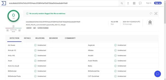 VirusTotal گزینه دیگری است که مشابه سرویس قبل کار میکند. این برنامه فایلهای نصبی APK شما را تجزیه و تحلیل و به شناسایی انواع ویروسها و بدافزارهای موجود کمک خواهد کرد. استفاده از این سرویس آسان است؛ فقط کافیست فایلهای خود را بارگذاری کنید تا مطمئن شوید بدون اشکال هستند.