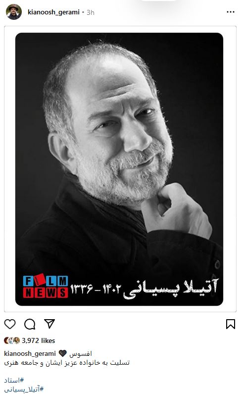 هشتگ آتیلا پسیانی ؛ خداحافظی هنرمندان با استاد (تصاویر)