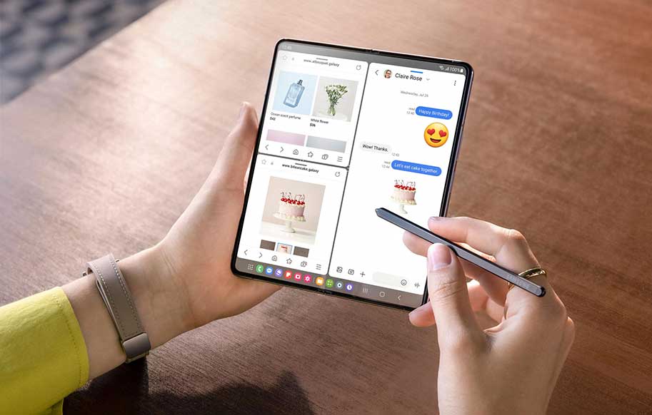 از دیگر مزایای این دستگاه پیشرفته، می‌توان به ویژگی پاپ‌آپ مخفی (Hidden pop-up) اشاره کرد؛ با این ویژگی یک اپلیکیشن می‌تواند در پس‌زمینه به کار خود ادامه دهد و در پنجره‌ای جداگانه به اجرای اپلیکیشن دیگری بپردازید. برای مثال حین انجام تکالیف می‌توانید به سرعت از ماشین‌حساب خود استفاده کنید و یا همزمان با تماشای ویدئویی آموزشی به‌صورت تمام‌صفحه، در گوشه‌ای از صفحه نمایش، از طریق یک پاپ‌آپ شناور با دوست خود چت کنید. قابلیت تا شدن این دستگاه نیز نیز امکان حمل و نگهداری آن را در هر موقعیتی بسیار آسان می‌کند، بنابراین با فضایی به اندازه یک گوشی معمولی شما از بهره‌وری یک تبلت برخوردار هستید.