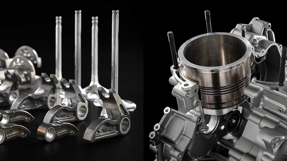 این موتور از اجزای آلومینیومی و منیزیمی استفاده میکند تا بهترین عملکرد و سبکی را داشته باشد.