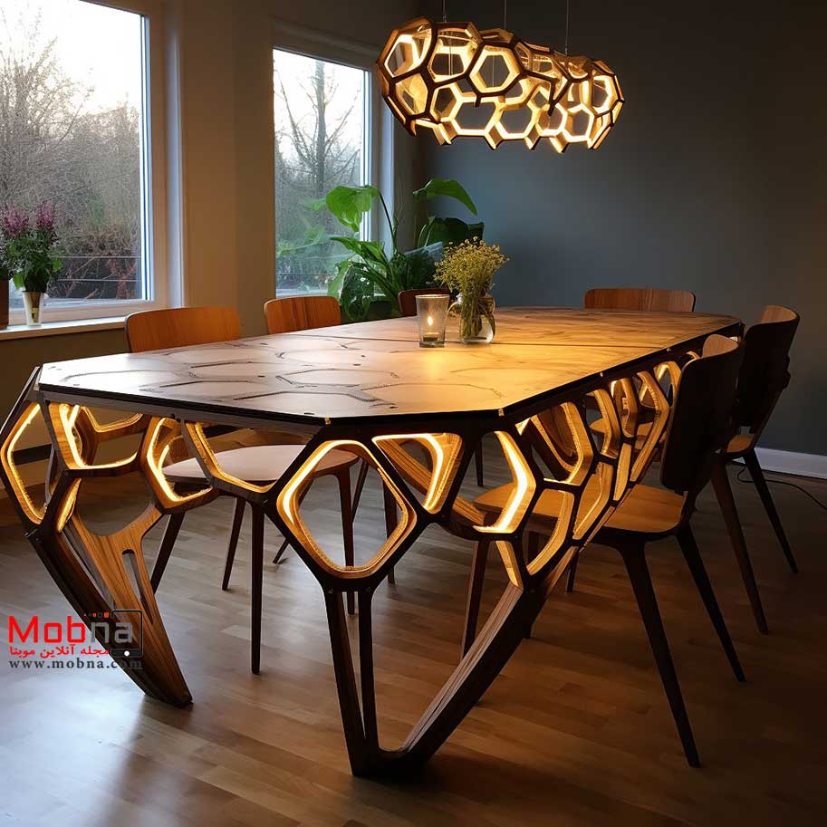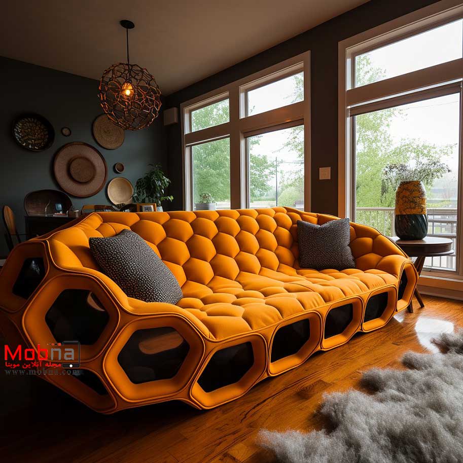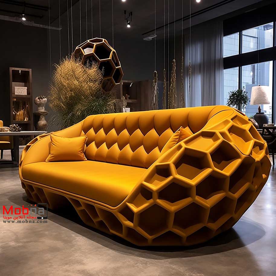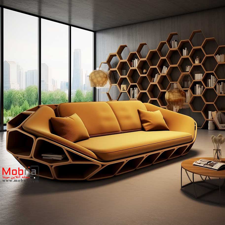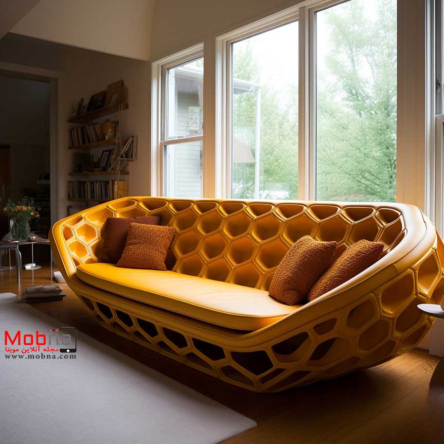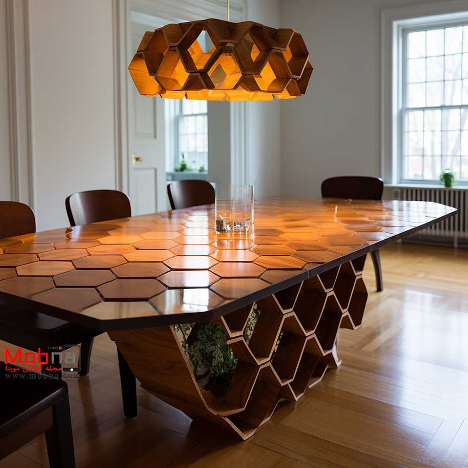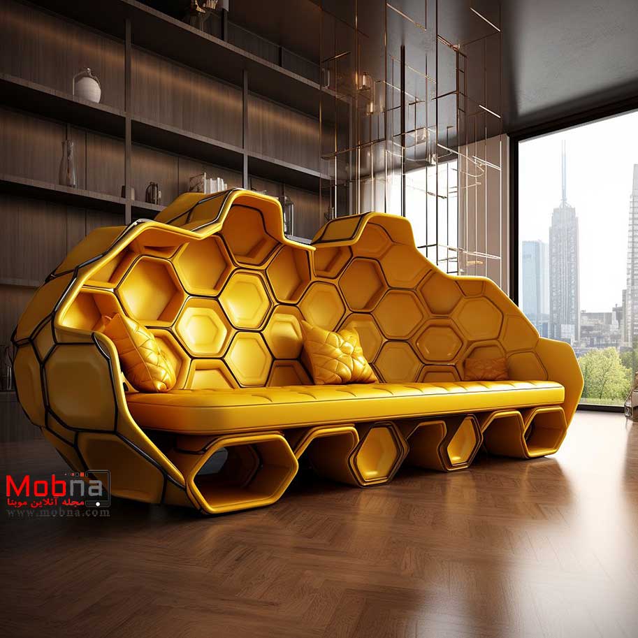 هوش مصنوعی دکوراسیون داخلی منزل را با الهام از کندوی عسل به تصویر کشیده است.