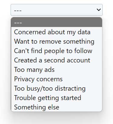 وقتی میخواهید اکانت خود را حذف کنید، اینستاگرام از شما میخواهد یکی از دلایل زیر را انتخاب نمایید: