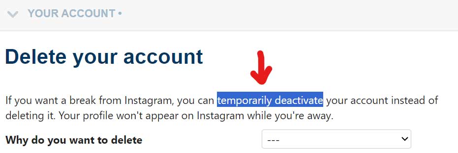 حذف موقت اکانت اینستاگرام یا دیاکتیو کردن