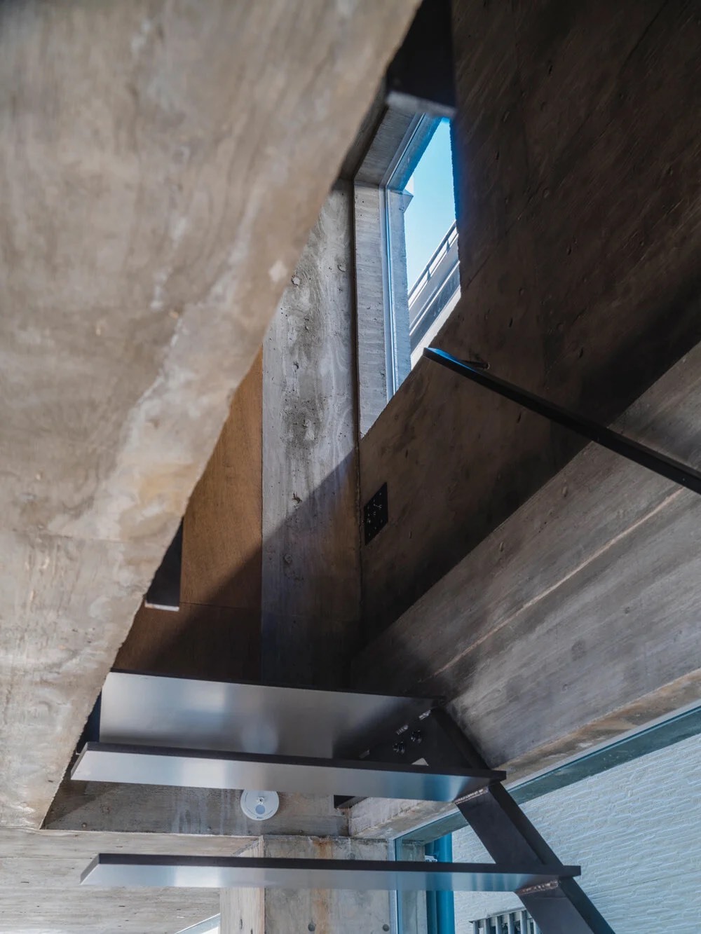 با وجود نمای حداقلی، طراحی IGArchitects به طور یکپارچه محیط بیرون را با درون خانه ادغام می کند و فضای داخلی را با طرحی ملایم میان ساختار بتنی مقاوم سازه برجسته می سازد. به محض ورود، طبقه همکف فضایی غار مانند با دیوارهای بلند و ستون های با ابهت را در ذهن مخاطب تداعی می کند.