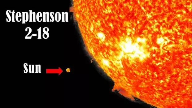به همینخاطر ستاره Stephenson 2-18 با اختلاف در صدر قرار میگیرد. این ستاره ۱۸۹۰۰ سال نوری از زمین فاصله دارد و شعاع آن ۲۱۵۰ برابر شعاع خورشید است. بدینترتیب میتوان ۱۰ میلیارد خورشید را درون این ستاره قرار داد.