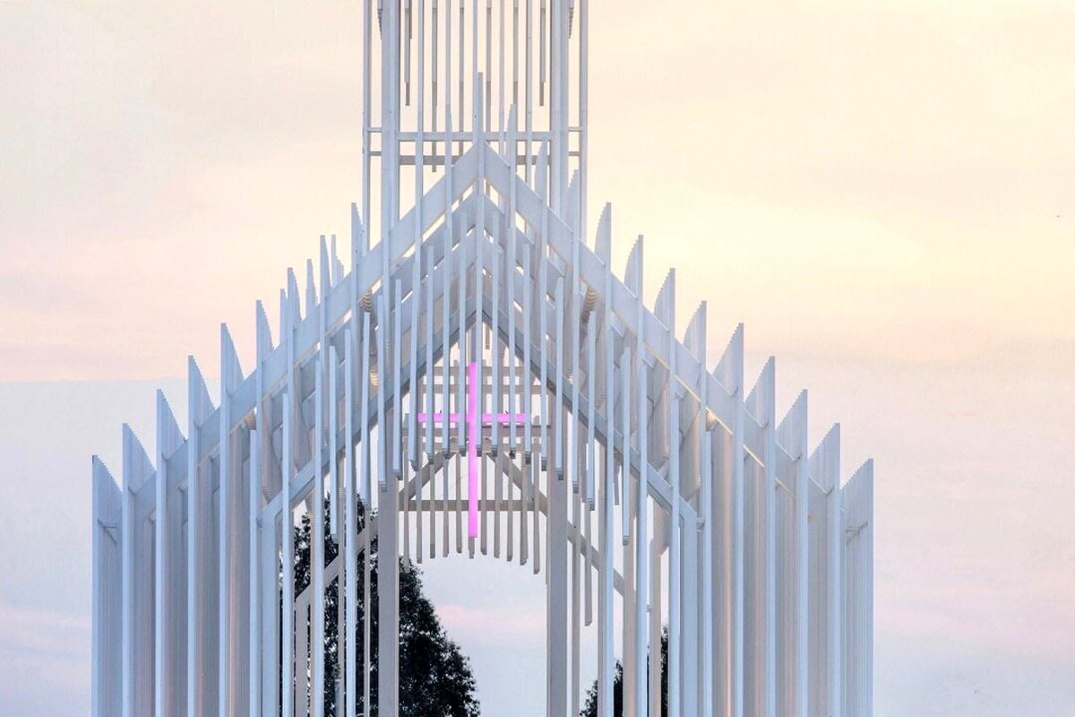 نمای بیرونی کلیسای بدون سایه چنگدو بسیار مسحورکننده است، طراحی داخلی آن نیز به همان اندازه مبتکرانه است.