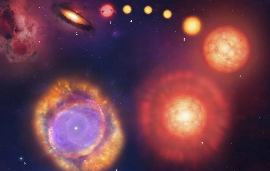 چرخهی عمر خورشید به چندین مرحله تقسیم میشود: