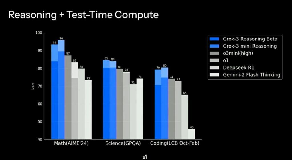 مدل استدلال‌گر Grok 3 هنوز در مرحله بتاست و آموزش آن ادامه دارد. این مدل هم دارای یک نسخه مینی است که در بنچمارک‌های ریاضیات، علوم تجربی و کدنویسی با رقبا مقایسه شده است.