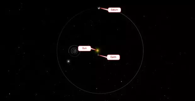 در حال حاضر، زمین نیز در موقعیتی قرار گرفته است که حلقههای زحل را تقریبا از لبه میبیند. این رویداد که «گذر از صفحه حلقهها» نامیده میشود، زمانی رخ میدهد که زمین از صفحه استوایی زحل (جایی که حلقهها در آن قرار دارند) عبور میکند. در این حالت، به دلیل ضخامت بسیار کم حلقهها (حدود ۱۰۰ متر در مقایسه با قطر ۱۱۲,۰۰۰ کیلومتری زحل)، آنها تقریبا به طور کامل از دید محو میشوند. تصور کنید که سعی دارید یک تار مو را از فاصله یک زمین بسکتبال ببینید!